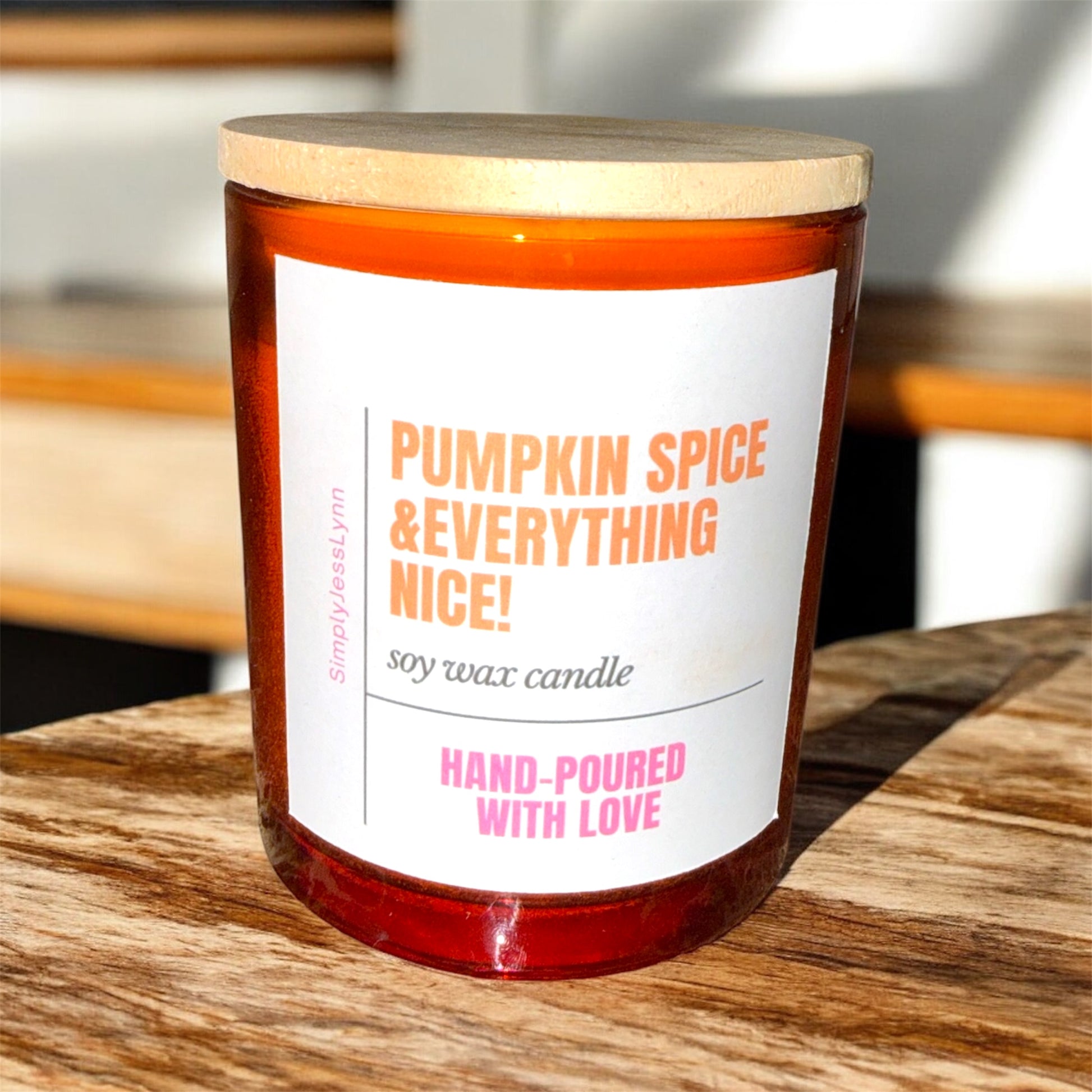 10 oz. Hand Poured 100% Soy Candles with Wood Wicks. No black smoke!!